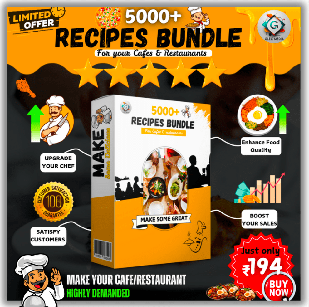 Unlock the ultimate collection of over 5000 recipes, designed to make your cooking journey exciting and effortless! Whether you’re a seasoned chef or just starting, this bundle has everything you need to create delicious meals for any occasion.